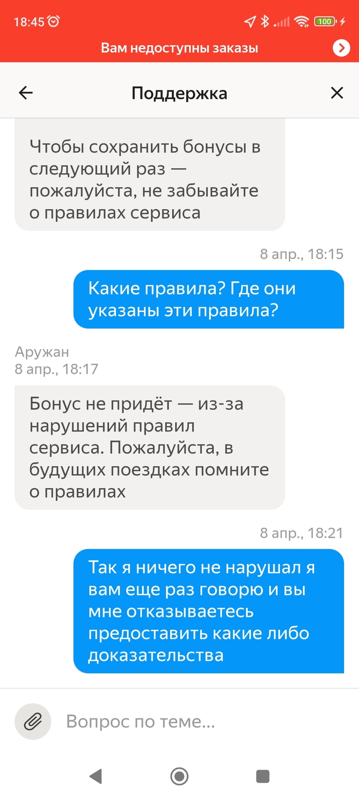 Система отмены заказов также вызывает множество вопросов. Я не могу отказаться от заказа с низким рейтингом пассажира без потери приоритета, что приводит к снижению моего заработка и других санкций. Это явно несправедливо, поскольку я, как водитель, должен иметь возможность избегать потенциально конфликтных ситуаций, особенно если вижу, что у пассажира низкий рейтинг.