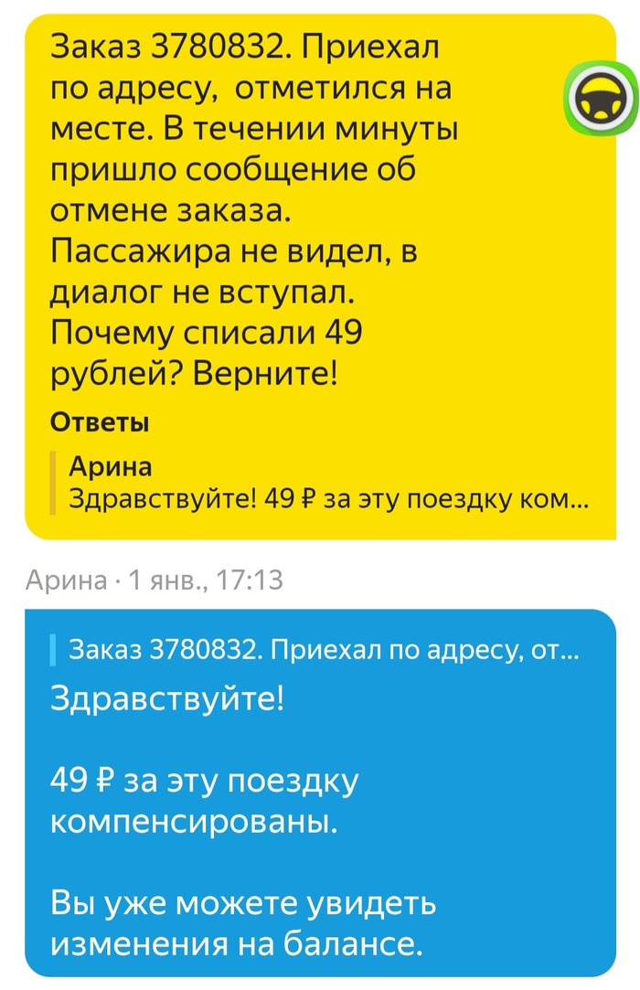 В целом новогодняя ночь мне понравилась. Народ на позитиве. Заказы которые были за наличку всё округление в мою пользу. На вопрос мелочь нужна был только один ответ: С новым годом. Как пример заказ 256р 3км дают 300 С новым годом сдачи не надо.