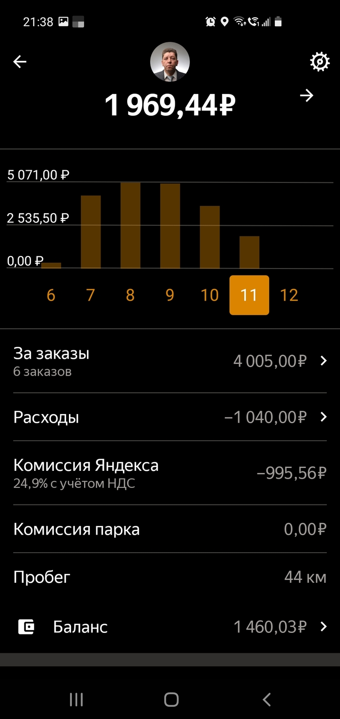 Обратите внимание на строчку "Расход" это затратная часть топлива. Т.е. затратил полторы, израсходовал максимум на 500, косарь в актив). Итог 4300+1000+700 с борта. Вполне хороший результат за 92км по заказам и десяток на подачи.