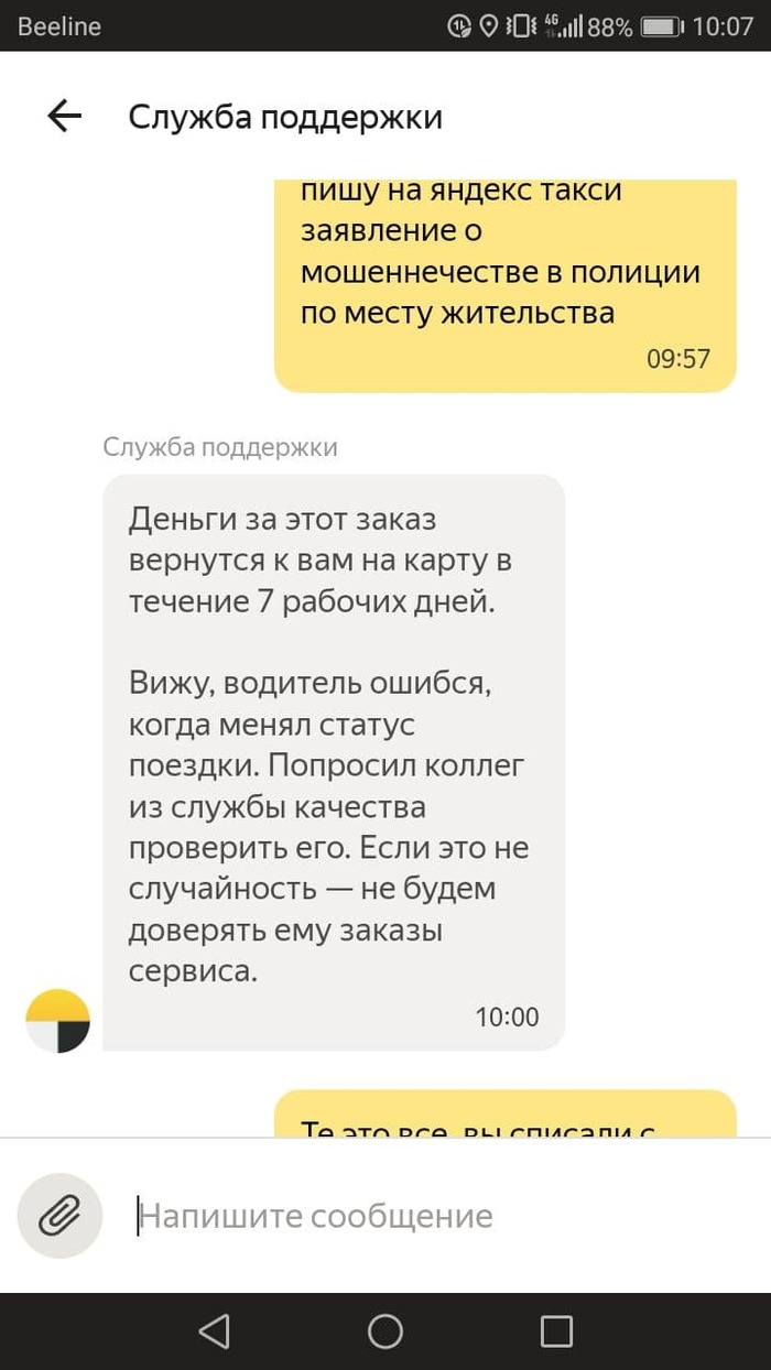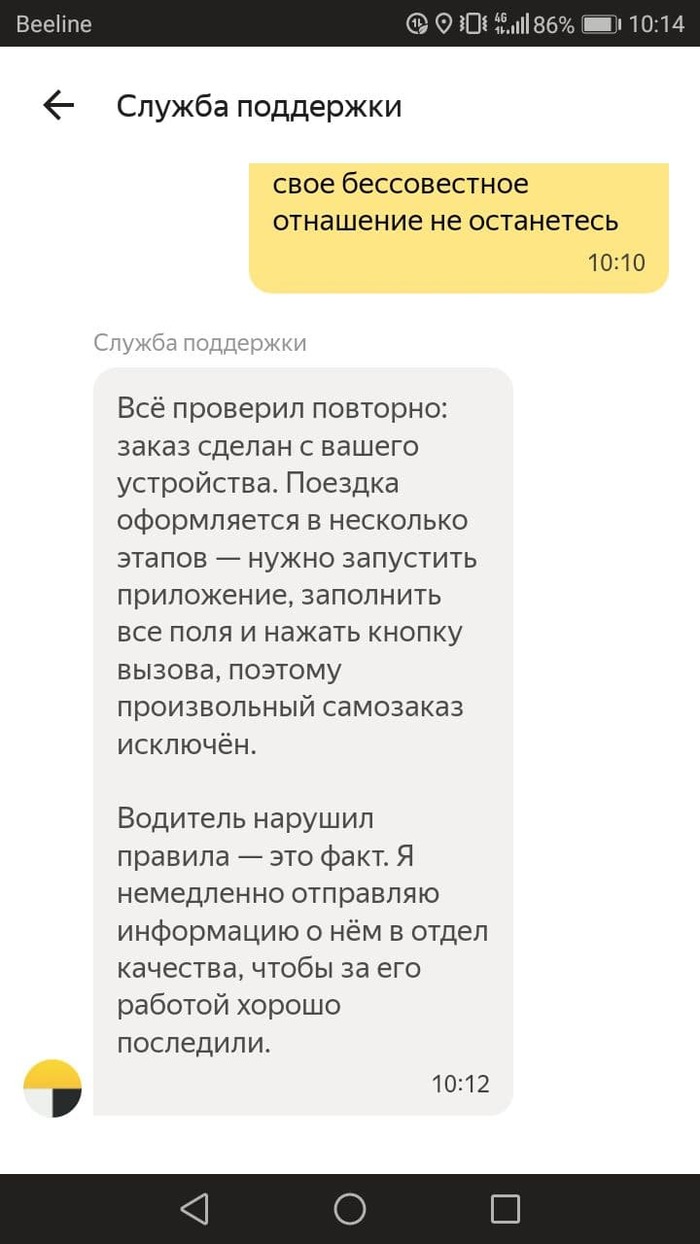 Ну те вы видите, мало того что не признали свою вину ( а почему Яндекс я считаю врет), но даже не извинились, а водителя возьмут на заметку и все.