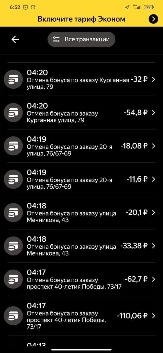 a. при поступлении информации о 6 и более случаях проявления грубости, доступ к заказам ограничивается на 30 дней. Информация о таких случаях учитывается за последние 200 или менее заказов, выполненных Водителем, в течение последних 48 дней;