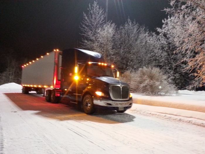 Фарго, Северная Дакота. Стоящий на обочине трак, который собираются тянуть- дело привычное. А вот разбросанное ПЕРЕД ним по обочине оборудование- явно что-то новенькое. Но через минуту всё становится ясно- впередиидущий трак это потерял, а следующий за ним, из-за маленькой дистанции, не успел среагировать и переехал всю эту красоту.