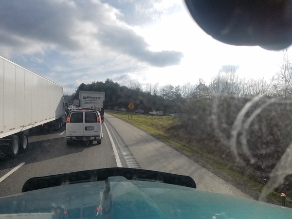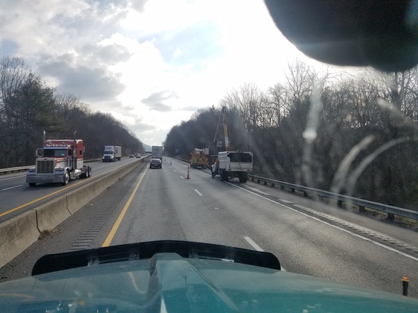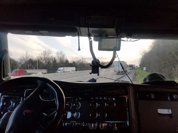 Приехал. Сказали что адрес верный, но конвейер требуется везти в новое здание на новой улице. Часто приходится везти на новые обьекты, которые не указаны на картах. В таких случаях либо встречают, либо дают указания в виде: полмили на юг и налево потом милю на запад. Все это по грунтовым дорогам. В этот раз водитель другой фуры согласился провести меня туда. Еду за ним на фото