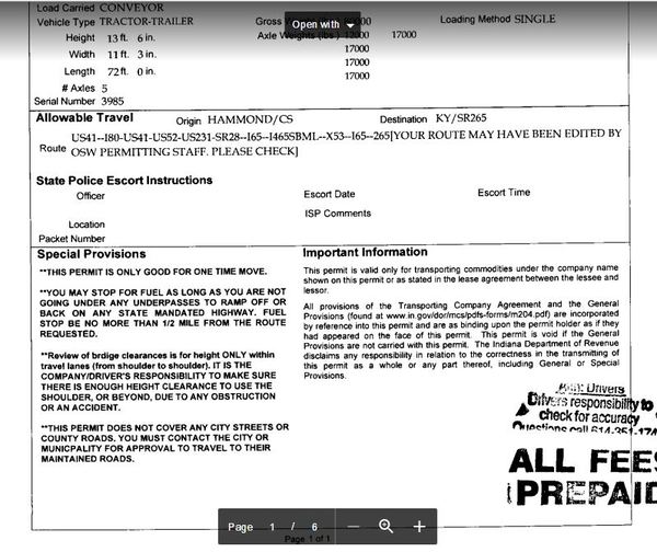Дали мне негабарит и решил я показать, что да как везут. Ширина прицепа обычно 259 см. Ну а груз шириной три с половиной метра. Маршрут из штата Индиана в штат Южная Каролина. Около 1200 километров.