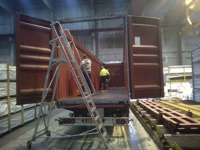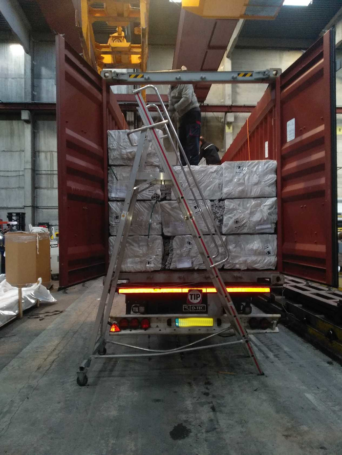 Пинда и два поляка залезки внутрь контейрера, и кран начал подавал им длинные пачки профиля внутрь, а они укладывали. Турок снаружи подцеплял новые пачки на крюки крана. Так у них этот процесс происходил.