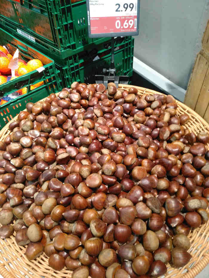 Видел, продавали съедобный каштан, мне еще не приходилось употреблять такой. Думал купить с десяток на пробу, но потом передумал.