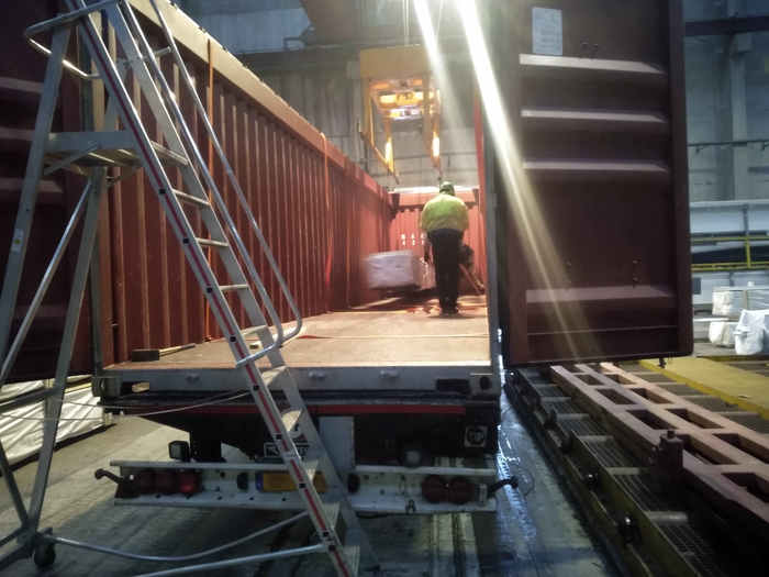 Минут через тридцать после начала загрузки по конейнеру постучали, я отъехал и закрыл двери контейнера, внутри стояли коробки "no name", без всякой маркировки и прочих наклеек. Заехал повторно на весы, взял чек после взвешивания, 10600 кг. было загружено в контейнер.