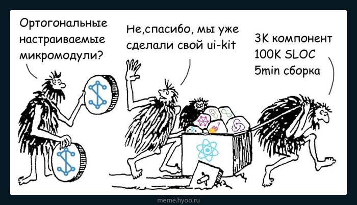 А тут ещё и первый Яшный UI-кит Lego ☦ на подходе, где ребята настолько упоролись по DRY, что понять хоть что-то в их XSLT-шаблонах, играющими паттерн-матчингом в пинг-понг, было решительно невозможно.