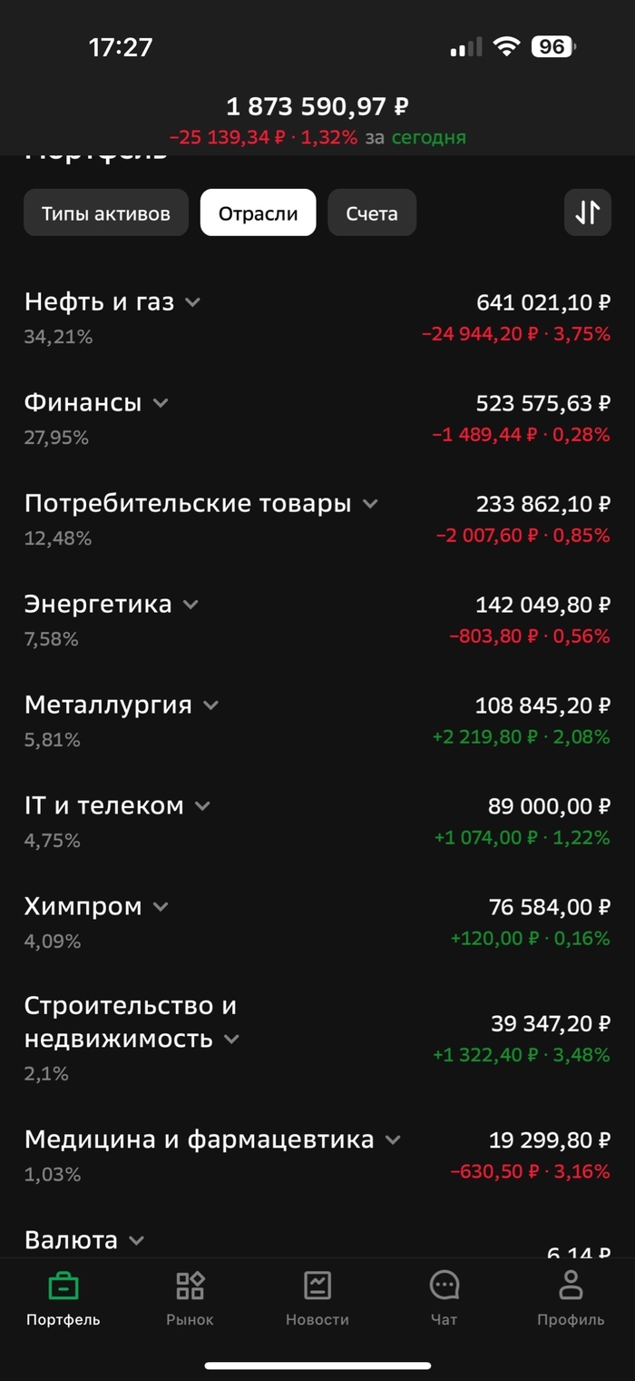 Так я разбил портфель по секторам, в течении года, хочу привести портфель к долям, которые соответствуют моим критериям. Но об этом позже.