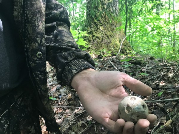 На человеческий продукт тоже не очень, хотя в очертаниях местами прослеживается определенная симметрия. Ни соло нахлебавшись мы двинулись в стороны машины, решив чуть сократив путь через чащу. Пройдя примерно 20-ть метров, я услышал четкий сигнал крупного цветного металла. Втыкая лопату в землю я повредил какой-то странный предмет круглой формы. Вот он.