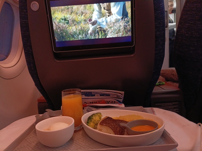 Для туриста главное что? Правильно, вкусно поесть. Очень быстро нами были вычислены самые вкусные пирожные на шведском столе. И вот сижу я, уничтожаю халявные эклеры, никого не трогаю. Внезапно приходит сообщение от авиакомпании - мол, мы вам изменили место. Сначала расстроилась, что не полечу рядом с ребятами. Потом смотрю - номер места какой-то странный. А это бизнес... Вот тут я знатно охренела от таких подарков судьбы