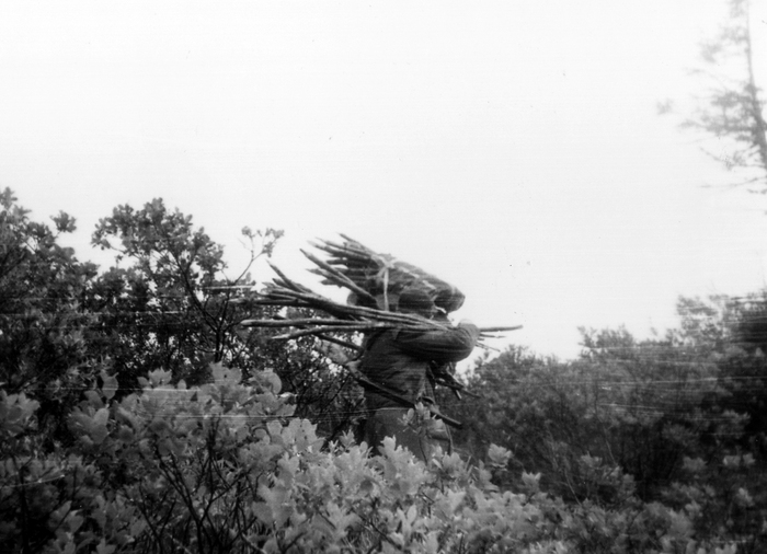 Идти с вешками по лесу не самое весёлое занятие. Они норовят разъехаться из мешка в разные стороны, цепляются за деревья, кусты и ветви. В конце концов, они просто тяжёлые! А ведь нам предстояло пройти километра три по старой горной линии до Хомгинёла, после чего ещё на километр подняться вдоль него до водораздела. А я ещё тащил на шее свою любимую зенитку – свой старый добрый фотоаппарат «Зенит-Е», который тоже добавлял веса в общую композицию.