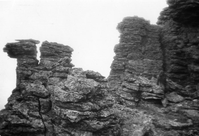 И вот в тумане стали проявляться останцы Хомгинёла. Казалось, будто в древние времена море, бушевавшее на вершине хребта, неожиданно окаменело, и сейчас мы шли между вздыбившихся в последнем рывке каменных волн, возникавших в густом тумане.