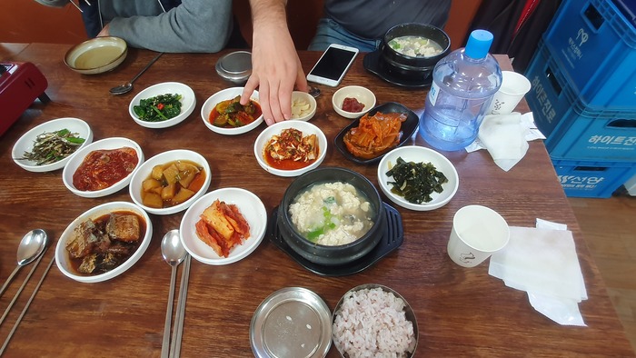 - ну и в итоге зачастую ешь на обеде только рис, вылавливаешь кусочки мяса, если такое есть в супе, и пытаешься найти какие-то овощи и траву без специй. Стоимость питания на человек в щиктанах начинается от 7000 вон (360 руб)