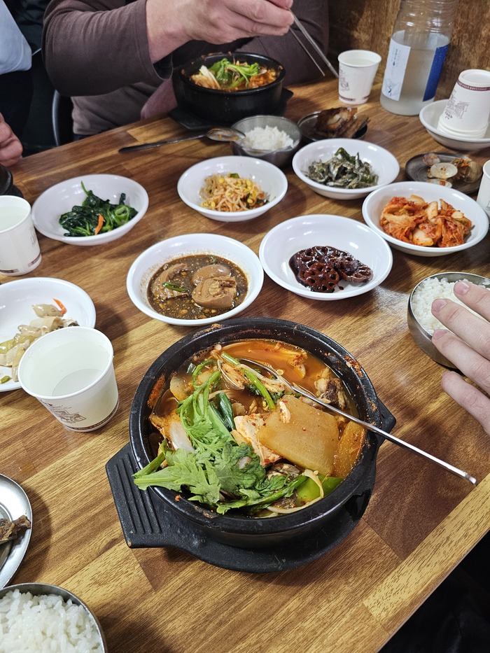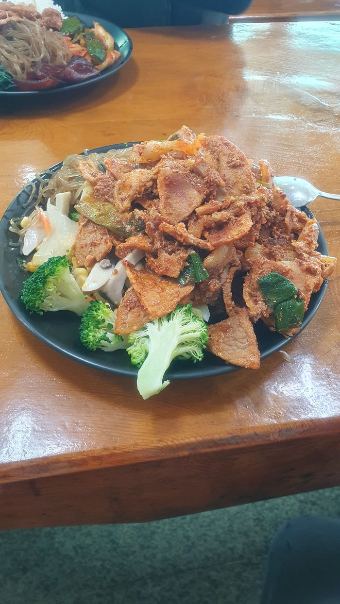 Мясо они едят когда идут бухнуть вечерком в ресторан по типу "сангепсаль", например. Это когда перед вами ставят плиту, и вы поджариваете мясо самостоятельно. Вот это тема! Такой вариант мне нравился, но ожидать такого на обеде точно не стоит))