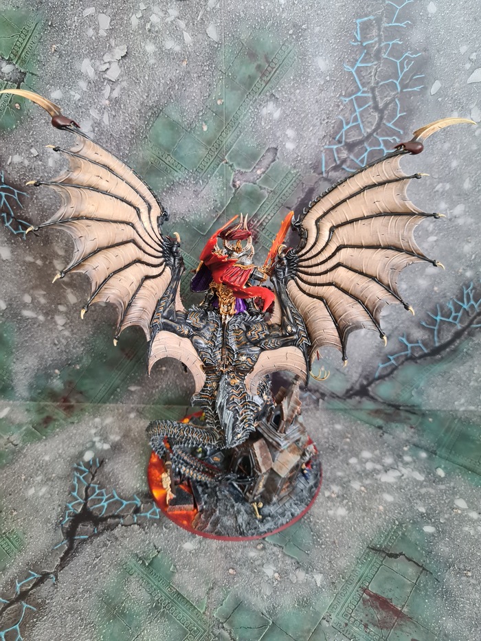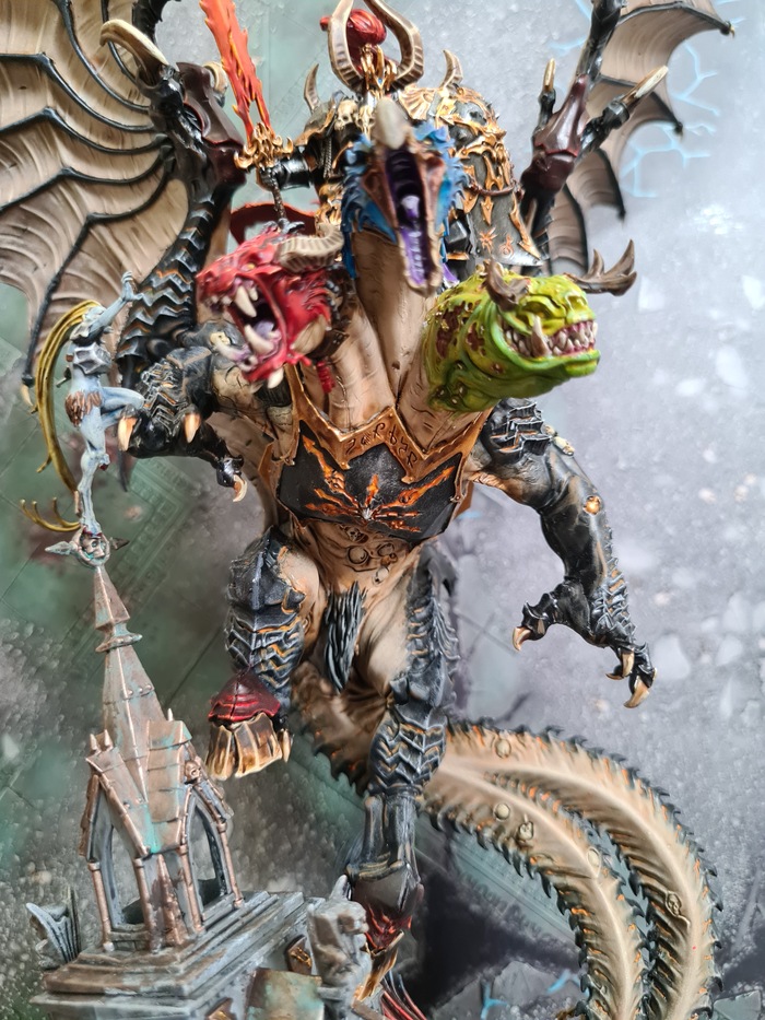 Третий пост из серии про любительский покрас. Сейчас хобби, к сожалению, встало на паузу, и куча серых миниатюр смотрит на меня с осуждением из шкафа. Героем этого поста стал никто иной, как варбосс орков Гордракк, на своем маленьком питомце. Вармастер фракции разрушения.