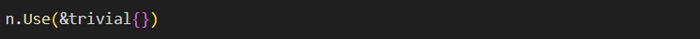 Но нам по-прежнему нужно указать negroni использовать в цепочке промежуточного ПО и нашу реализацию. Для этого можно вызвать метод negroni под названием Use и передать ему экземпляр реализации negroni.Handler: