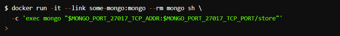 Эта волшебная команда запускает второй, теперь уже одноразовый, контейнер 𝗗𝗼𝗰𝗸𝗲𝗿, в котором установлен исполняемый файл клиента 𝗠𝗼𝗻𝗴𝗼𝗗𝗕 (то есть устанавливать его в систему хоста уже не нужно), и задействует этот контейнер для подключения к экземпляру 𝗠𝗼𝗻𝗴𝗼𝗗𝗕 𝗗𝗼𝗰𝗸𝗲𝗿 контейнера 𝘀𝗼𝗺𝗲-𝗺𝗼𝗻𝗴𝗼. В этом примере выполняется подключение к БД 𝘀𝘁𝗼𝗿𝗲.