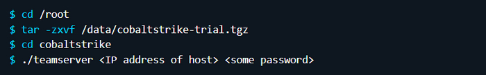 Оказавшись внутри контейнера, запустите team-сервер с помощью следующих команд:
