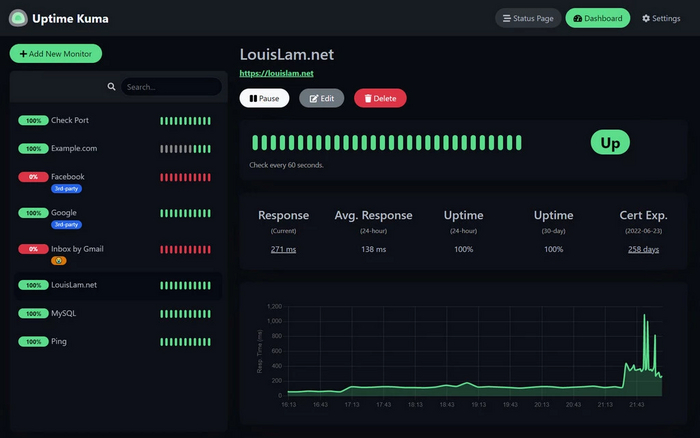 Для мониторинга сложных проектов подойдет Zabbix и Datalog. Для проектов поменьше подойдут решения и проще, например, Uptimerobot, с нотификацией в почту, и мобильное приложение.