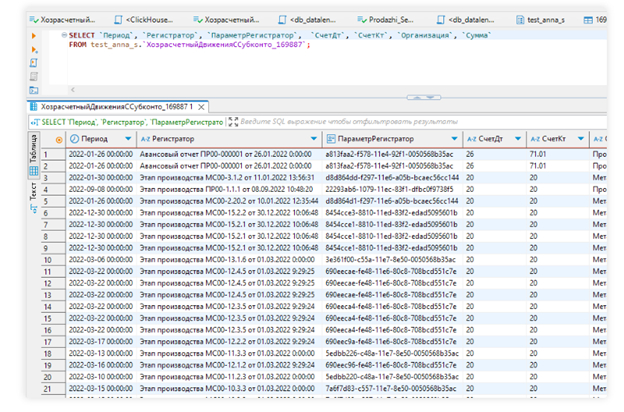 Представьте себе огромный корабль, на котором мы отправляемся в плавание по просторам данных. Наш первый пункт назначения — ClickHouse. Это мощная и быстрая база данных, которая идеально подходит для обработки больших объемов данных в реальном времени. Здесь, на ClickHouse, для параметров в таблицах-приемниках используется тип поля UUID. Это как уникальный признак для каждой записи, который помогает системе быстро находить и идентифицировать данные.