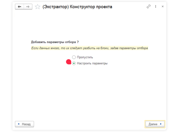 Переходим к настройке параметров отбора.