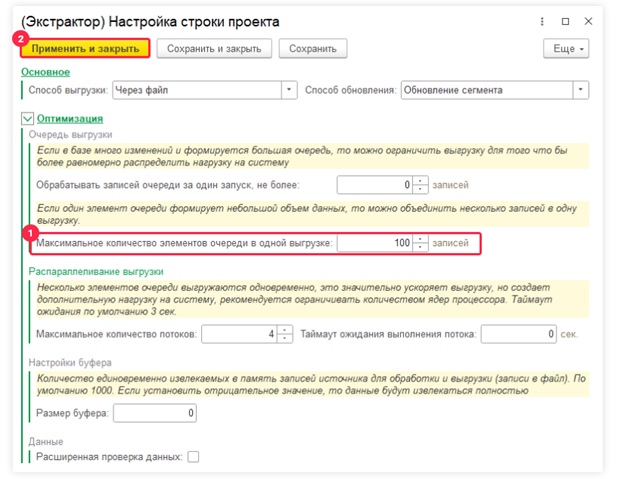 Теперь представьте, что вы стоите на развилке дорог. Куда пойти? Влево или вправо? Влево — будет означать установить «Максимальное количество элементов очереди в одной выгрузке» на 100. Вправо — оставить всё как есть. Выбор за вами, но мы советуем выбрать первый вариант.