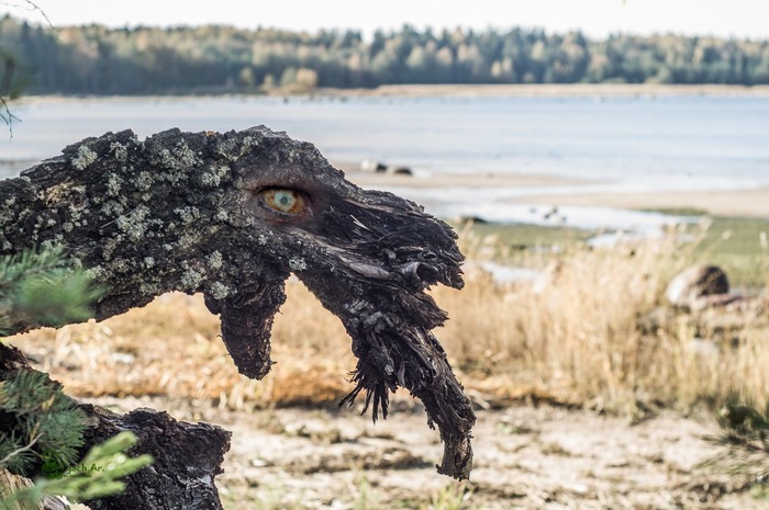 «Серное пламя осветило плоский камень с грубым рисунком. Охра надежно въелась в глубокие царапины. Картина являла миру пучеглазого мужика с рогами и в звериных шкурах.»