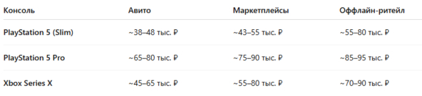 Оффлайн-ритейл ~85–95 тыс. ₽. Самый стабильный и предсказуемый вариант покупки PS5 Pro. Цена выше, но риски минимальны по возврату и гарантии.