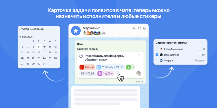 Поэтому мы объединили лучшее из обоих миров. Из трекера — ответственность, сроки и контекст. Из мессенджера — скорость и живое общение.