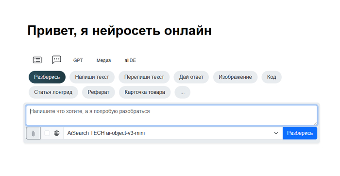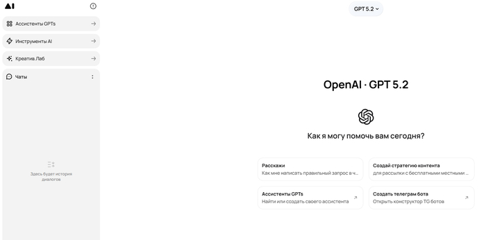 Российский сервис с доступом к ChatGPT-5, Claude, Midjourney и Stable Diffusion. Платформа генерирует тексты, коды и изображения. Чат-бот прекрасно справляется с обработкой и анализом загруженных документов. При загрузке файла система анализирует текст, делает краткие выводы и отвечает на вопросы. Подходит для автоматизации задач и экономии времени при работе с большими объемами.