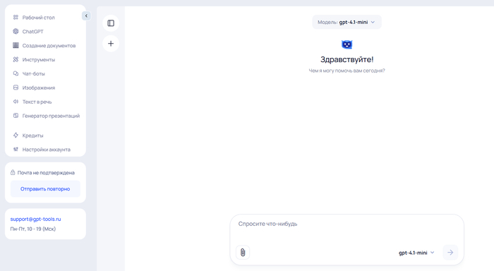 Сервис обеспечивает доступ к ChatGPT и Midjourney без блокировок в России. Платформа поддерживает русский язык в интерфейсе и запросах. Пользователи могут генерировать тексты, изображения и даже заменять лица на фото. Сервис предлагает инструменты для бизнеса и повседневных задач. Также доступны функции по работе с файлами AI и преобразованию файлов, что делает работу с данным сервисом удобной для разных типов пользователей.