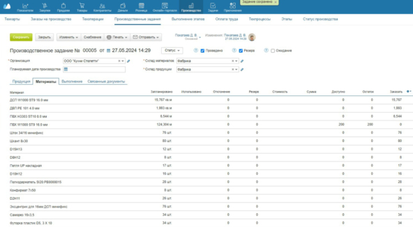 Перешёл на МойСклад. Создаю техкарту на заказ, загружаю файл с деталями — сразу вижу, чего не хватает на складе.