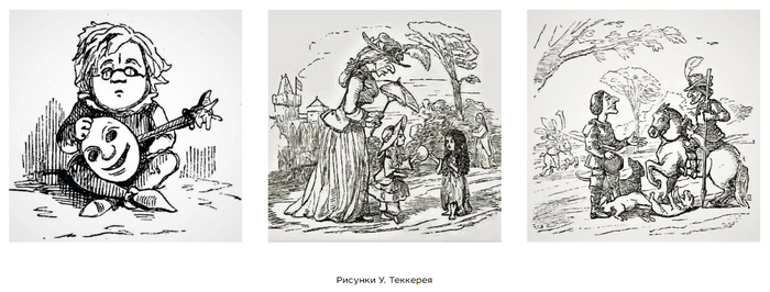 Он иллюстрировал большинство своих произведений, не исключая и такие основные в его творчестве вещи, как "Ярмарка тщеславия", "Пенденнис" или "Виргинцы".