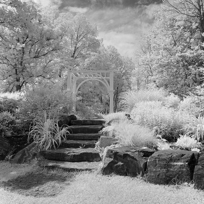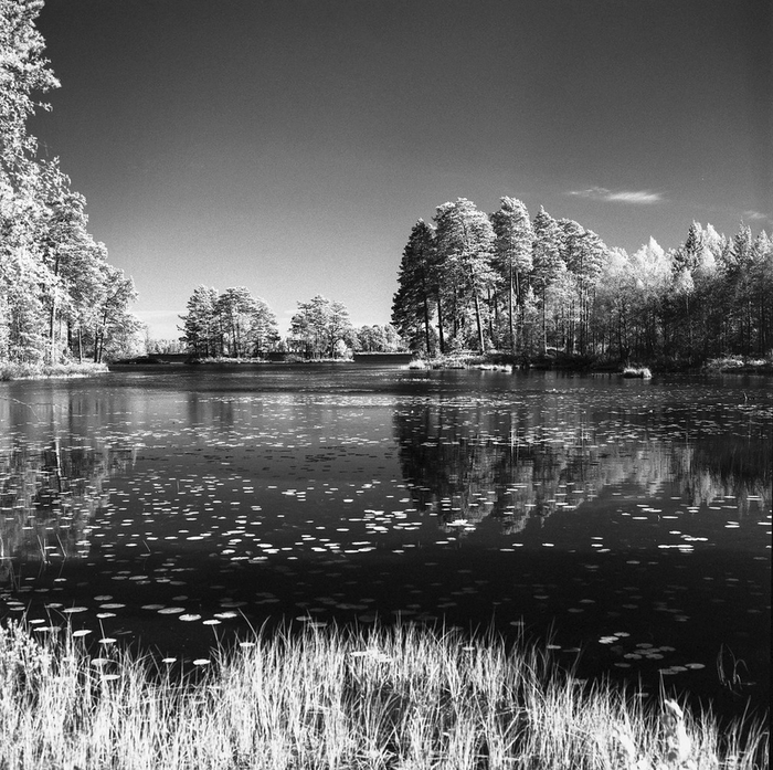 Как известно, человеческий глаз способен воспринимать видимое излучение с длиной волны от 400 до 780 нм. Инфракрасный свет начинается в ярко-красной области видимого спектра примерно на 750 нм и выходит за пределы 1000 нм. В свое время выпускалось несколько типов пленок, чувствительных к ИК излучению, до наших дней дошла только черно-белая Rollei Infrared 400 (тип 135 и тип 120). Эта пленка в паре с соответствующими фильтрами позволяет получать изображения с впечатляющими эффектами: листья и растения изображаются белыми тонами, а вода и безоблачное небо кажутся совсем черными, изображение получается сильно контрастным и драматичным. Впрочем, результаты съемок в значительной степени зависят от условий освещения.