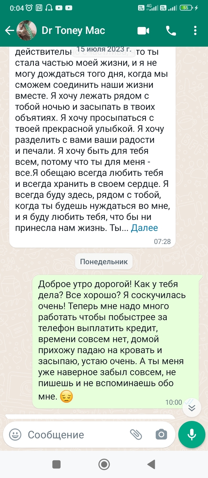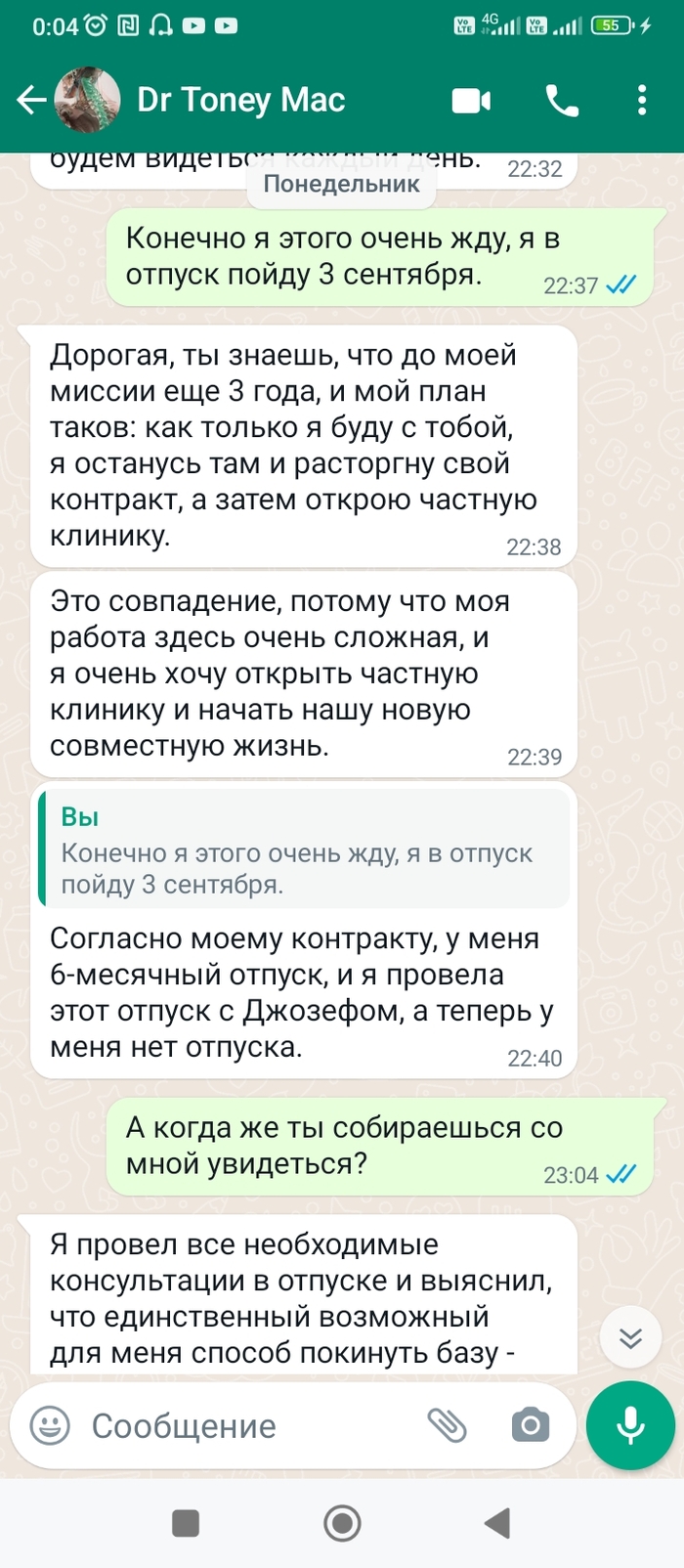 Итак дорогие мои в этом посту не буду выкладывать прям всю переписку уж очень много сообщений, будет самое главное...