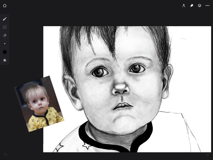 Она решила нарисовать сына, на фото ему год с небольшим:)