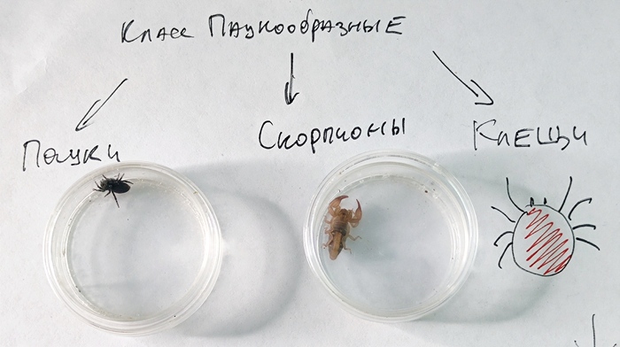 Чуть от радости не заорал. Потому что у нас с учениками по курсу была схема "Класс Паукообразные" - и очень приятно было вдруг напротив стрелок выдвинуть паука и скорпиона в чашках Петри)