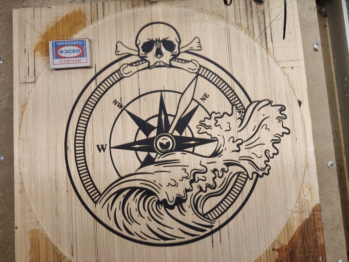 3. Отфрезеровал рисунок гравировальной 45° фрезой(комплектная, других на тот момент не было) .