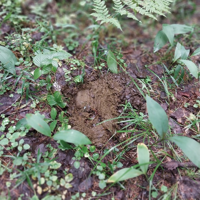 Пока был в лесу, угораздило немного заплутать. Задрал лицо к небу (искал солнце) и ногой наступил в большую кучу дерьма.