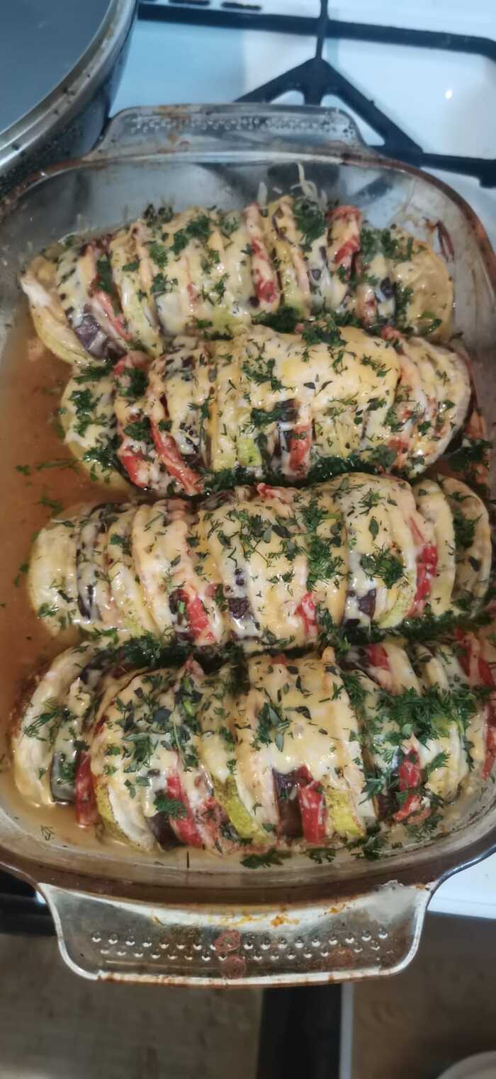 Запекать 40 минут при 200Затем посыпать сыром и еще 7 минут запекать