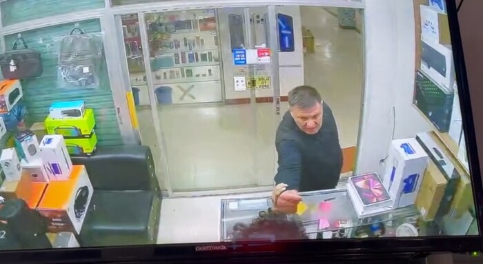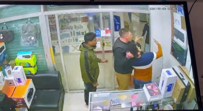 1:30 быдло хватает за бороду продавца, второй продавец пытается остановить быдло