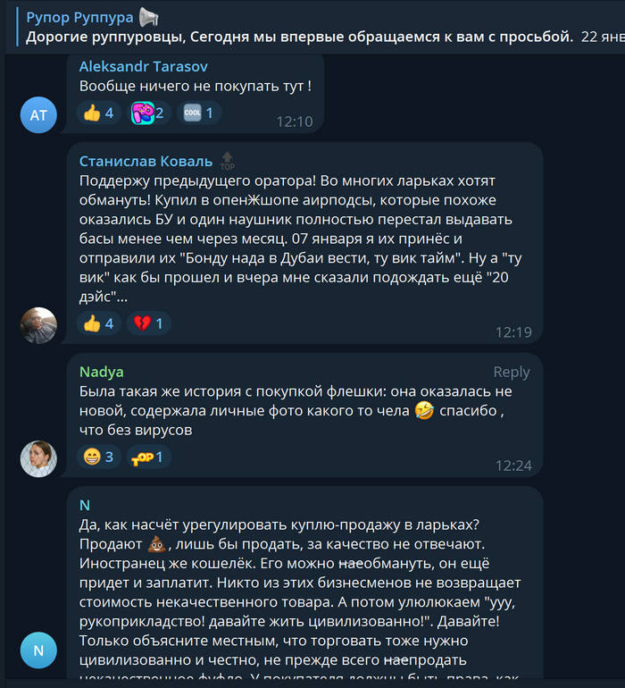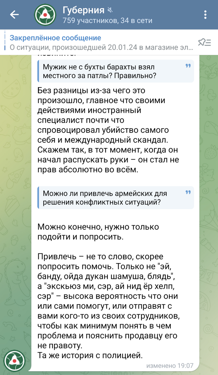 Вот только дальше автор пишет не про строителей, а про конфликт с местным продованом. Который вроде как от строителей прямо финансово не зависит. Заходим в ТГ помойку по ссылке первоначального поста и читаем: