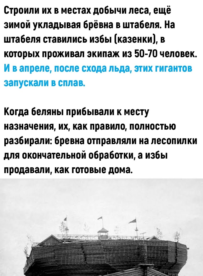 Во-вторых, строили их без чертежей, передавая технологию постройки судна из уст в уста. Поэтому ни чертежей, ни описания постройки судна не просто не сохранилось, а даже не существовало. В-третьих, суда одноразовые. После того, как беляны доставляли на место, их разбирали. Поэтому они не сохранились целиком до наших дней, хотя деревянные суда находили и не единожды (http://cr-journal.ru/rus/journals/560.ht…)
