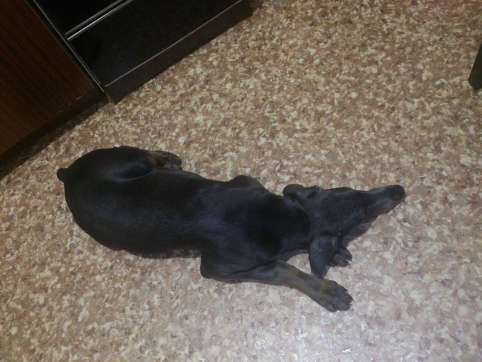 А ещё доберман стала постепенно поедать квартиру. Она не спеша поглотила кресло, потом превратила двуспальный диван в односпальный, потом раскрошила учебную гипсовую голову. Потом подруга рассказывала, как она пришла домой, а доберман сидит и смотрит особенно невинно. В ответ на грозный вопрос, что случилось, животинка отрыгнула сапог.