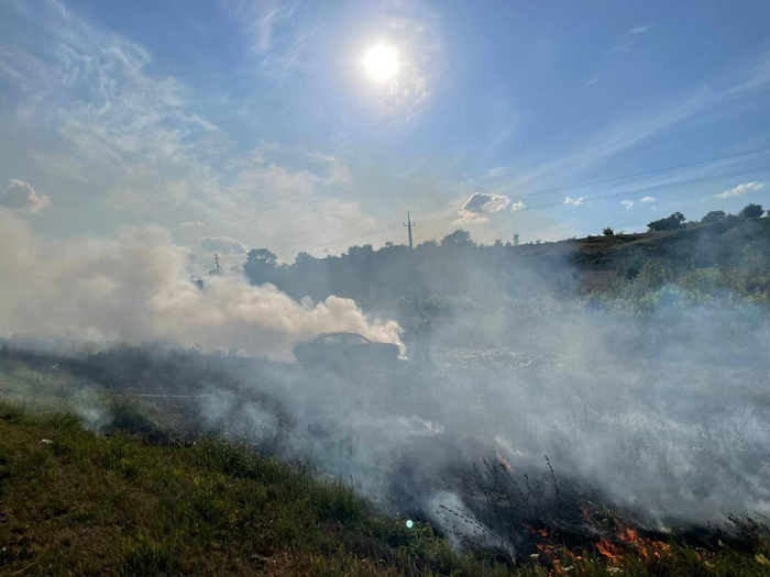 От взрыва автомобиль слетел с дороги, вследствие чего загорелась и сухая трава. Пожарные расчеты ликвидировали очаги возгорания", - написал Гладков.