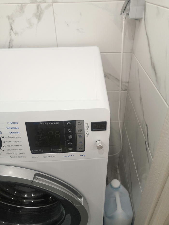 От размеров я слегка охренел, плохо читал характеристики, или вообще не читал😀, оказался монстр на 8 кг белья, думал в ширину двери не пролезет в ванну, но с зазором в 5 мм все пролезло и в габариты встала как и планировалось.