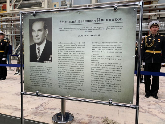 Тральщик назвали «Афанасий Иванников» в честь героя Советского Союза, командовавшего в годы Великой Отечественной войны тральщиком «Т-115» 6-го дивизиона тральщиков бригады траления Печенгской ВМБ Северного флота, капитан-лейтенанта Афанасия Ивановича Иванникова.